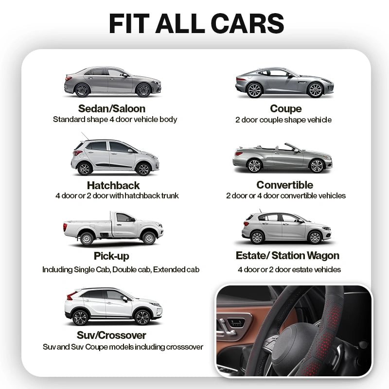 Τα καλύμματα τιμονιού μας έχουν σχεδιαστεί για να ταιριάζουν στα περισσότερα οχήματα , συμπεριλαμβανομένων αυτοκινήτων, φορτηγών, sedan, van και SUV . Το κάλυμμα των πίσω καθισμάτων είναι συμβατό με διαιρούμενα-πτυσσόμενα καθίσματα 50/50, 40/60, 60/40 και 40/20/40.