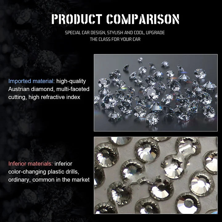 - Αυτό το γυαλιστερό κρυστάλλινο διαμαντένιο αυτοκόλλητο τιμονιού έχει τα χαρακτηριστικά της προσωπικότητας, της κομψότητας, της μόδας και της γλυκύτητας, κάνοντας το αυτοκίνητό σας εξατομικευμένο.